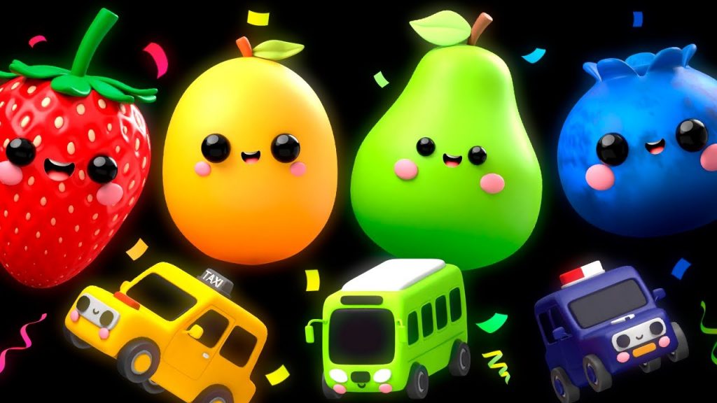 Dancing Fruit with Toy Cars – Sensory Video.